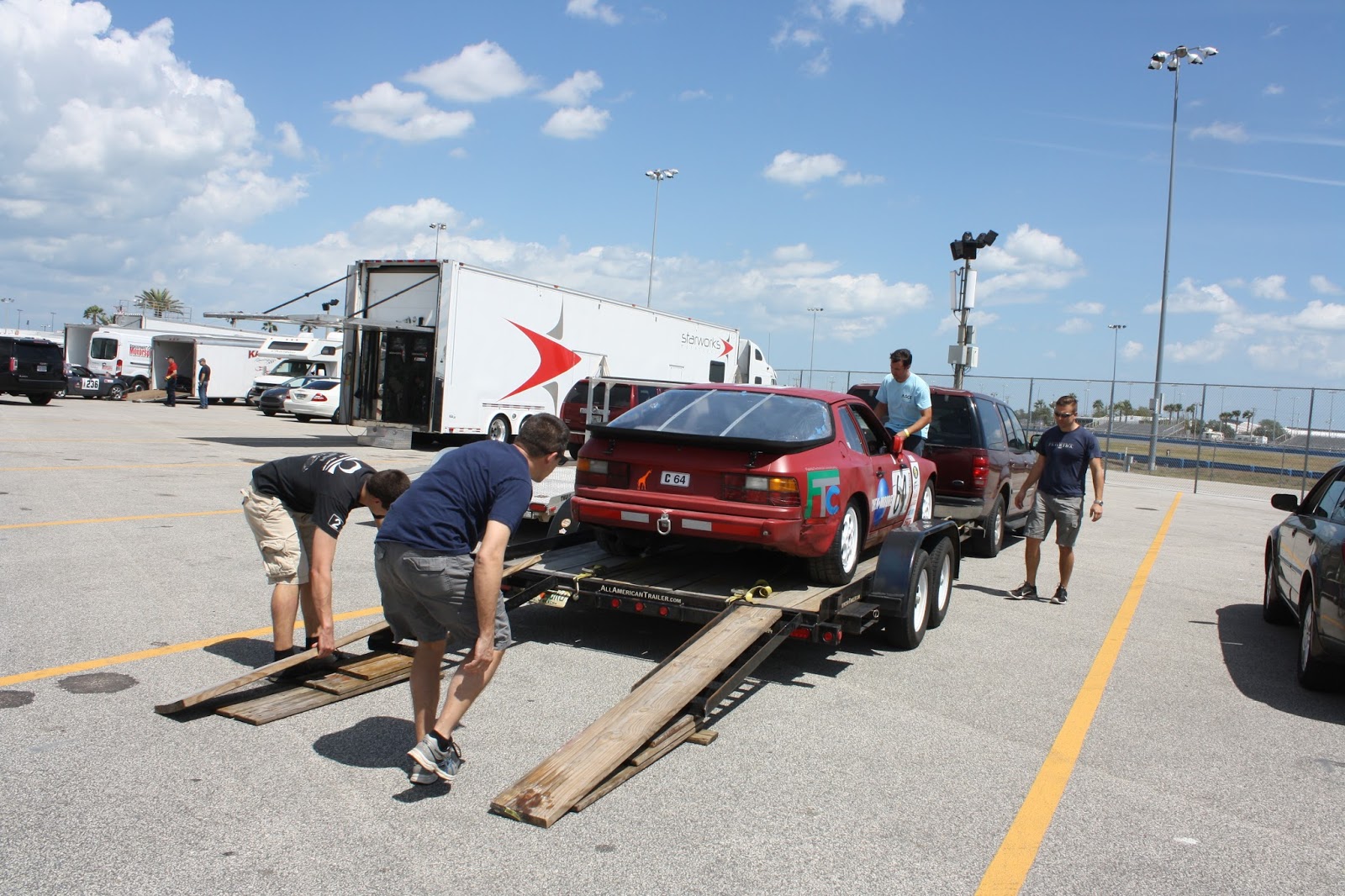 Chumpcar holds you at pit exit until minimum pit duration is met. Also, we were paddocked next to the same Starworks trailer used by Land at Daytona.